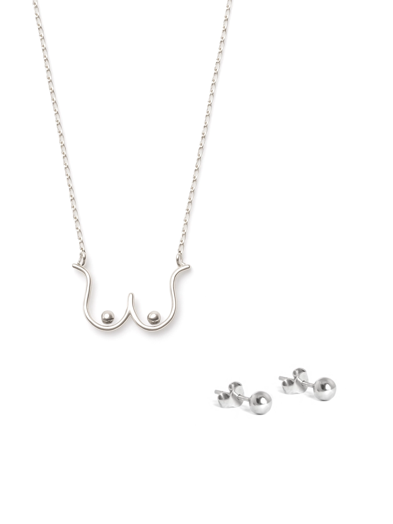- Серебряная подвеска 925 пробы в виде бюста + серьги пусети 5 мм