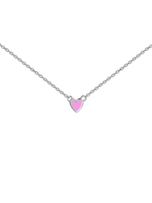 - Срібна підвіска 925 проби з кулоном у вигляді серця з емаллю рожевого кольору