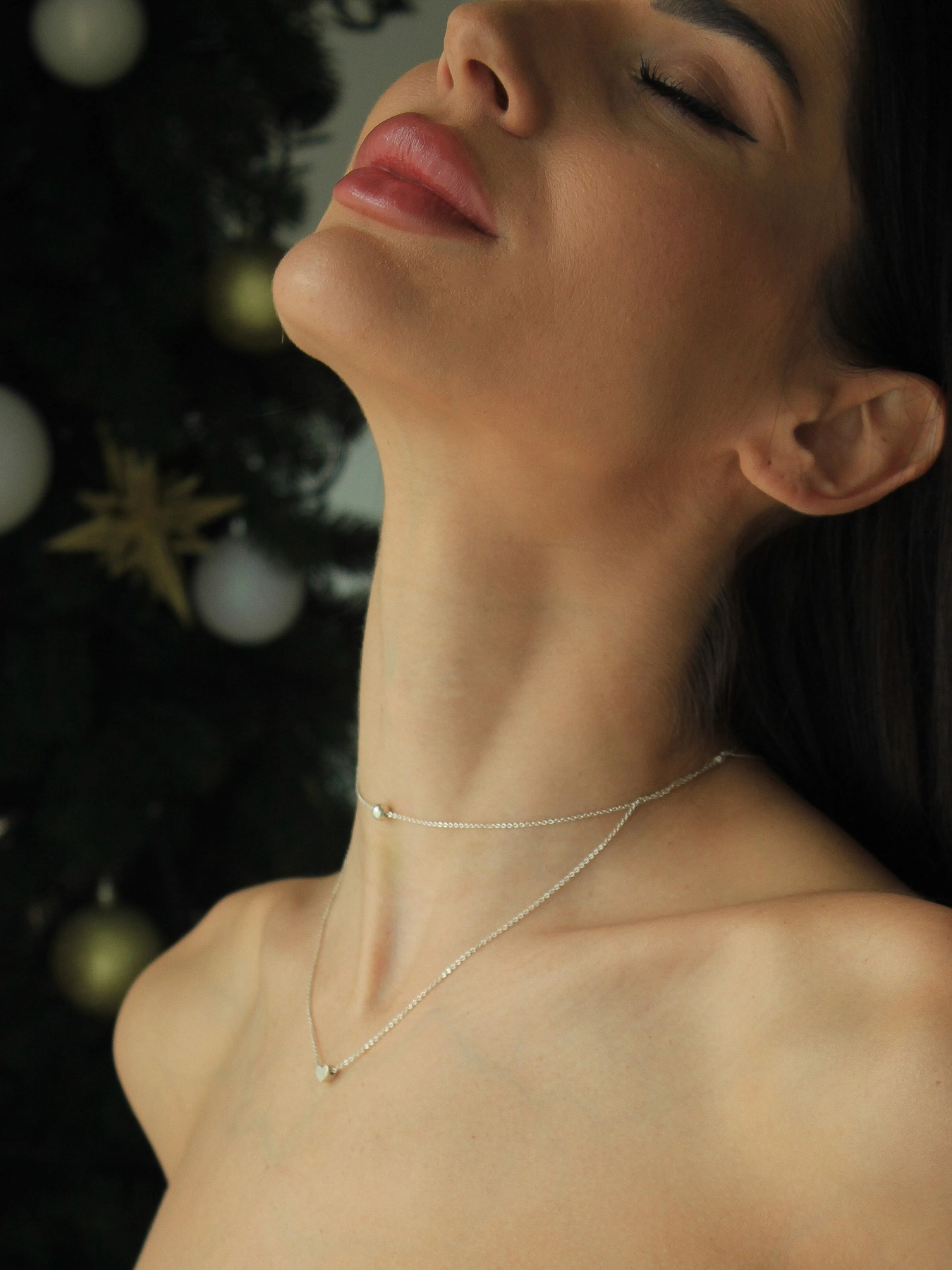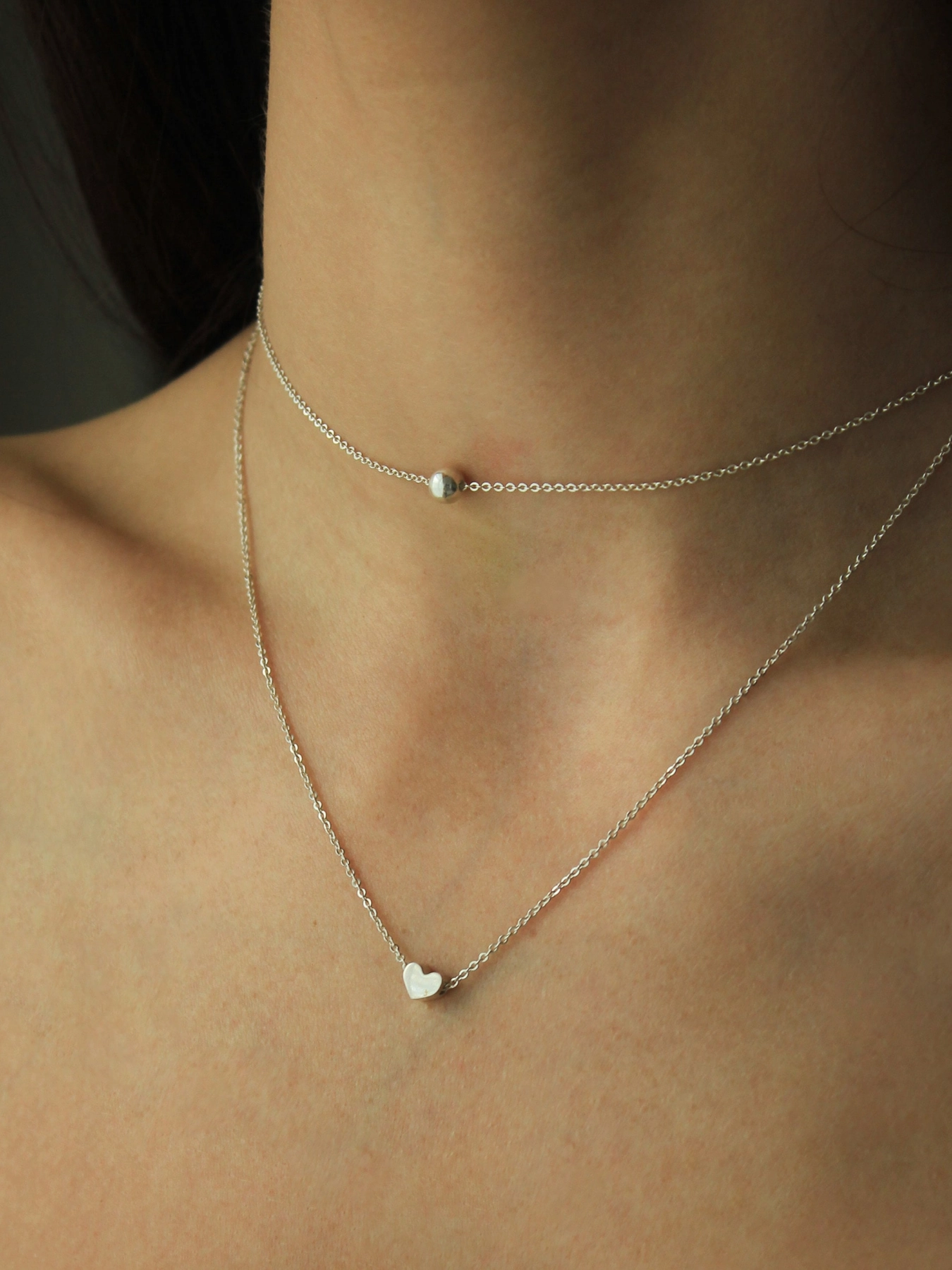 - Срібна підвіска 925 проби з кулонами у формі серця та сфери