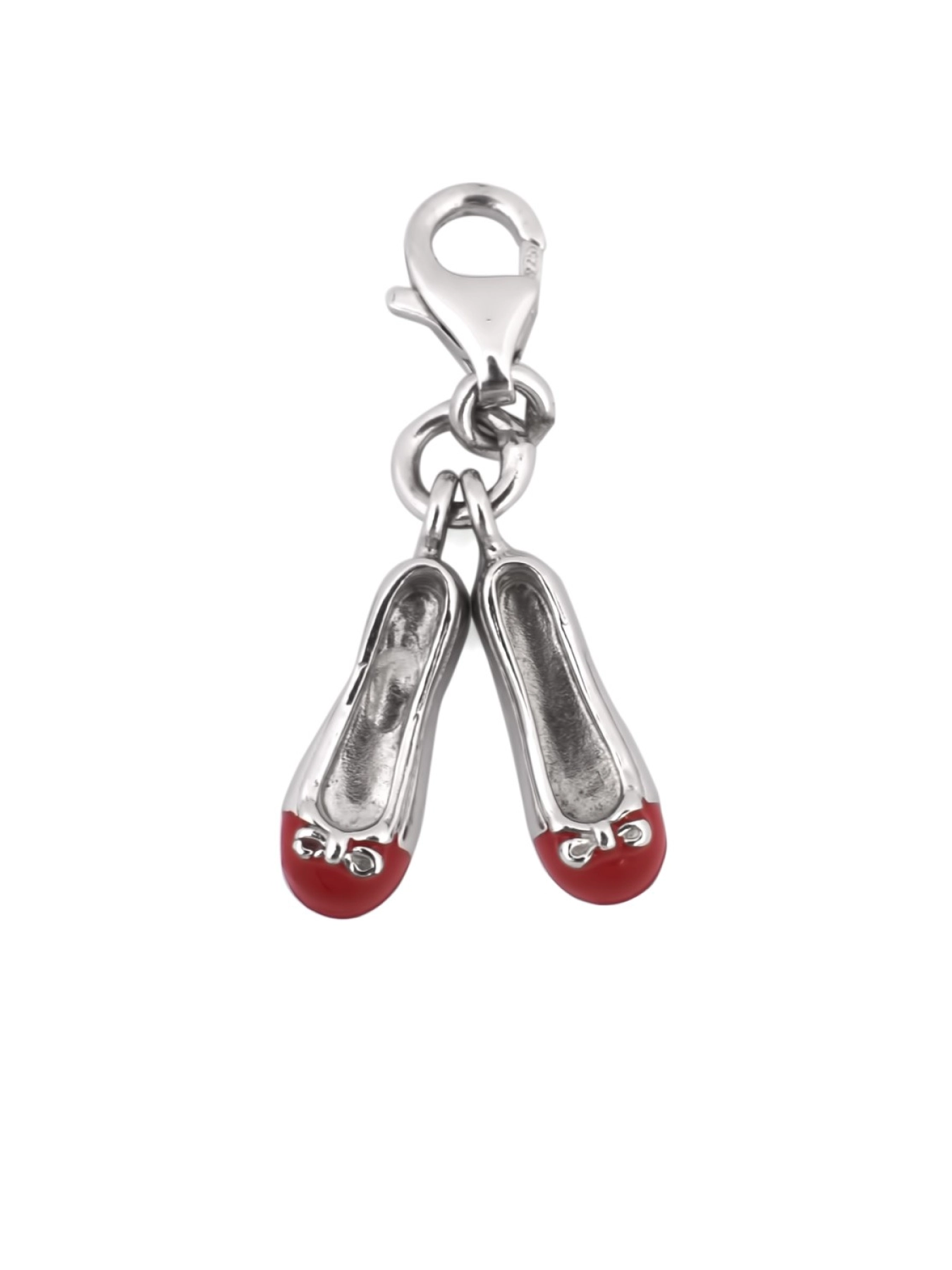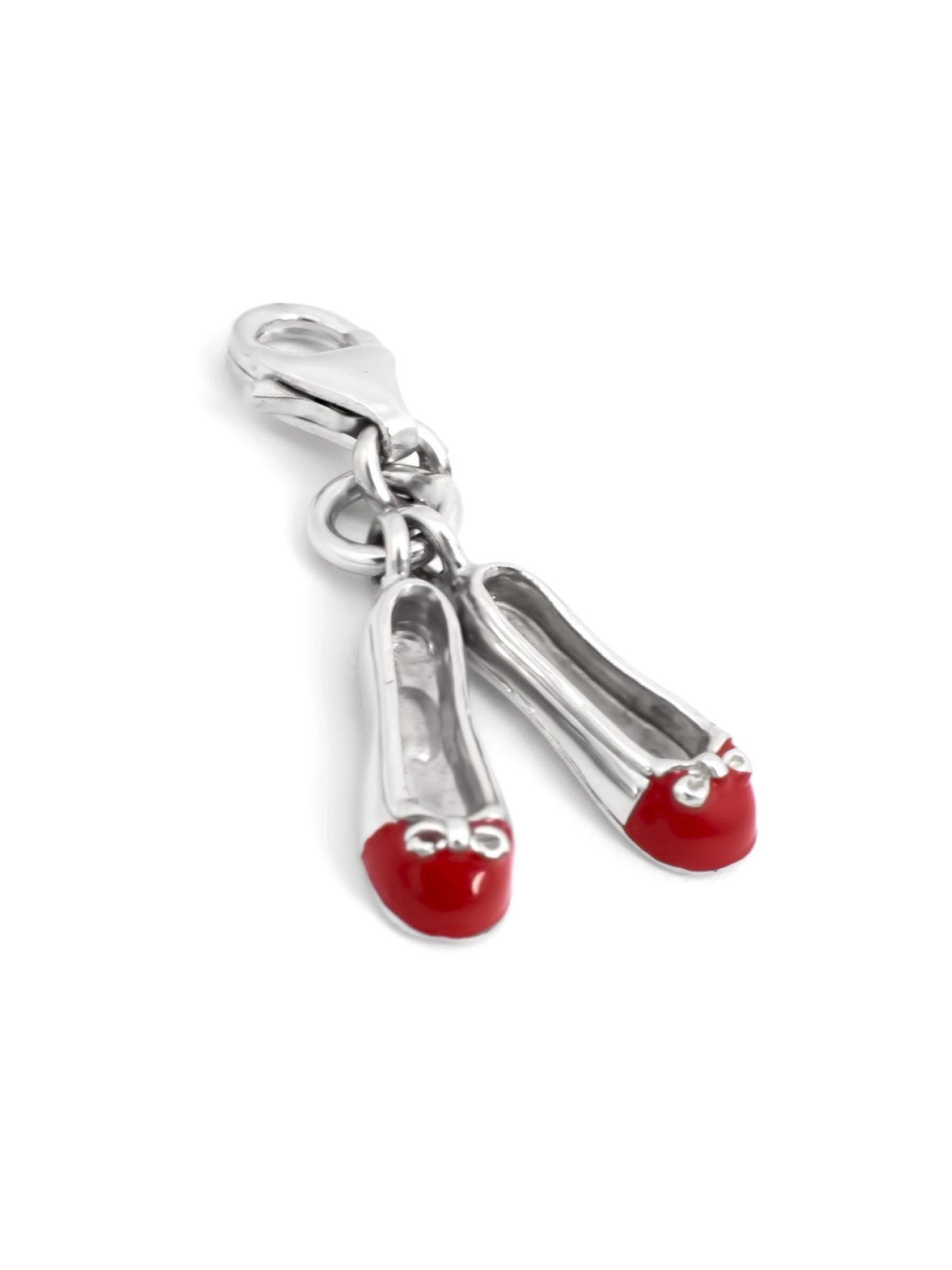Увага до дрібниць народжує досконалість, а ось досконалість вже не дрібниця. Срібний Шарм 925 проби для браслета у вигляді балеток, носки яких покриті червоною емаллю, ідеально доповнить ваші прикраси.